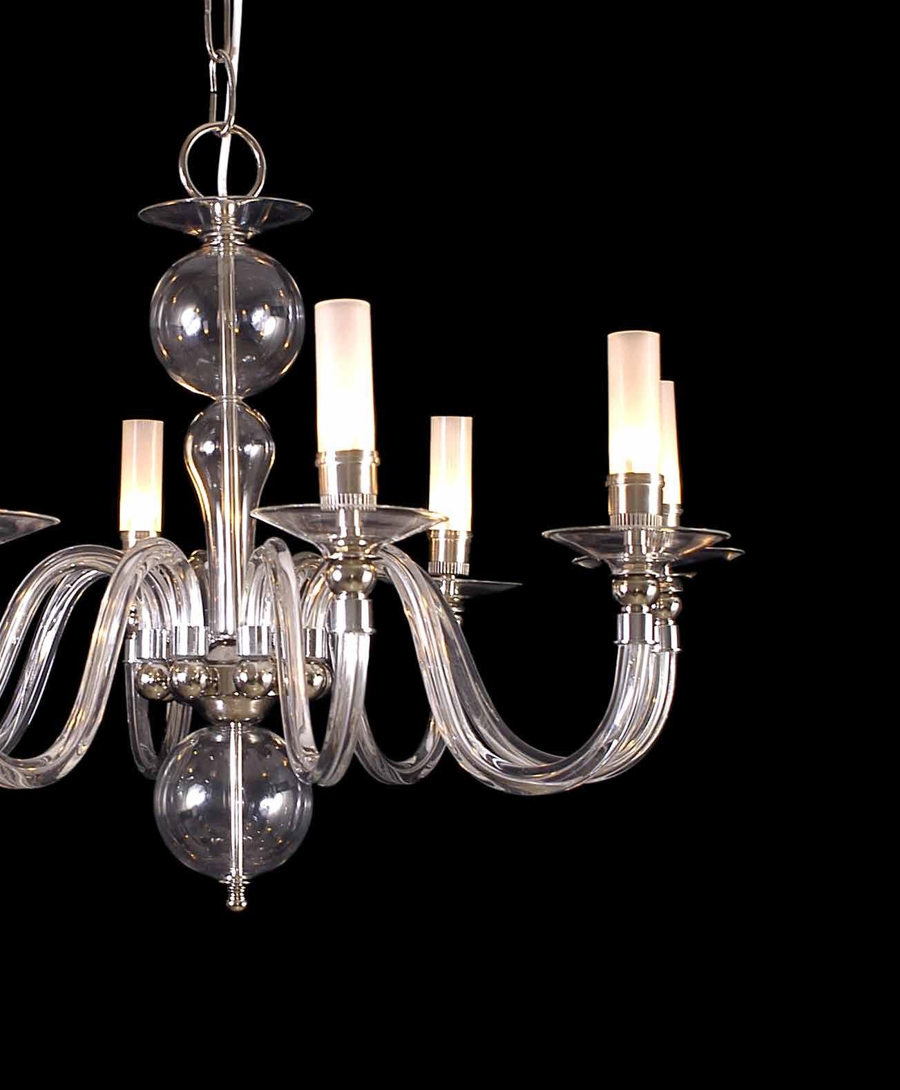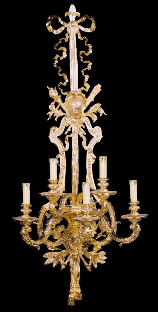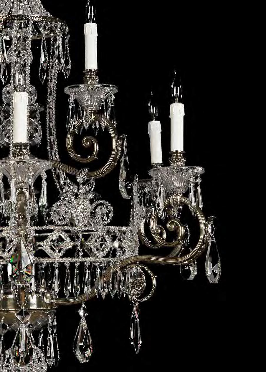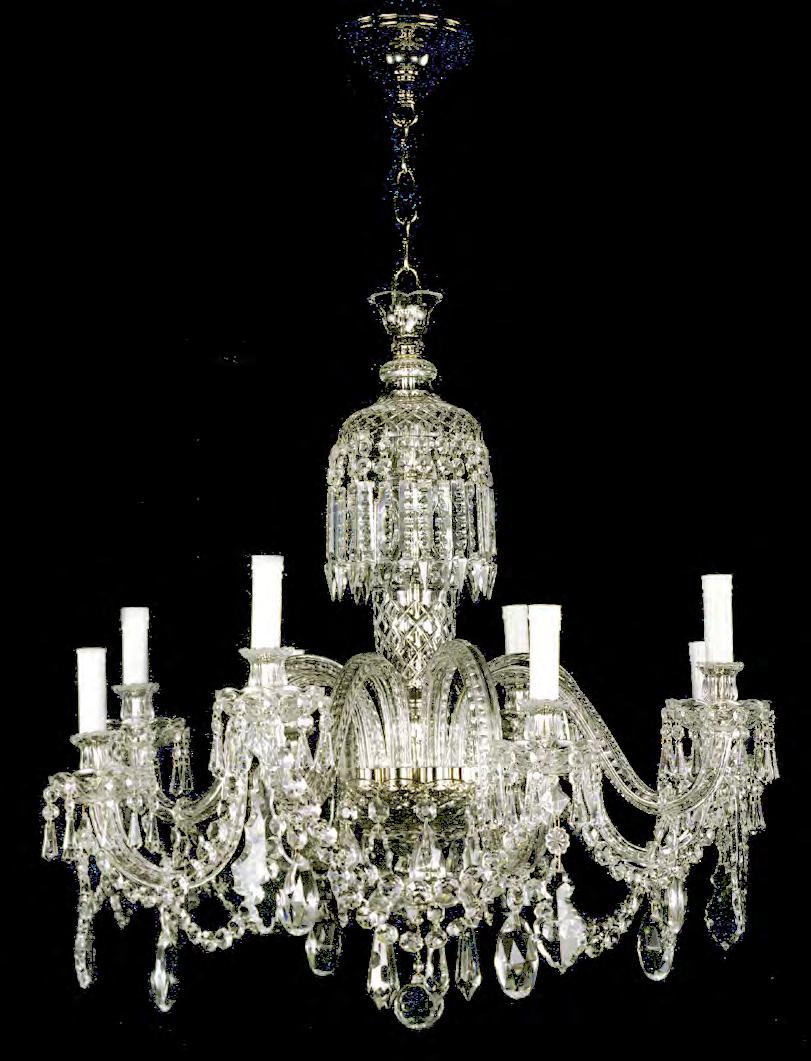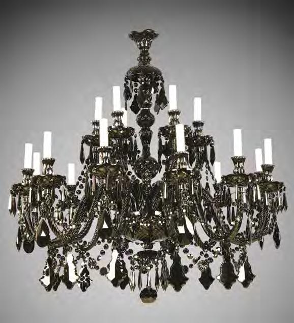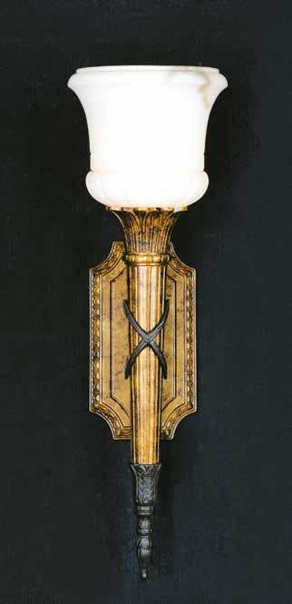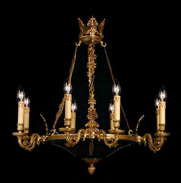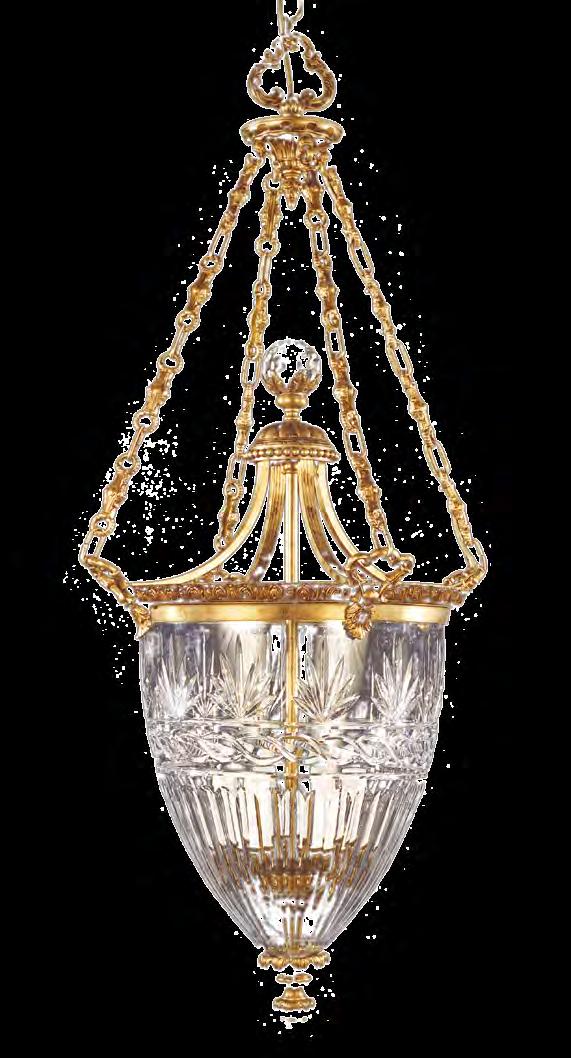 The Lobby area is decorated with 6 chandeliers hand made in sand cast brass apperaring at the image og the right.