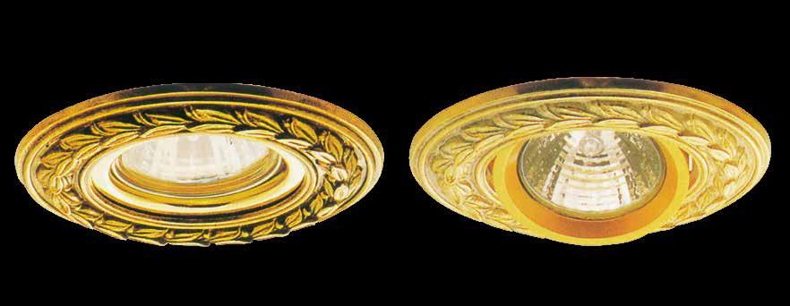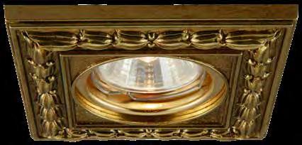 30º swivelling recessed fitting in casted brass for 12V power supply using safety transformer conforming to EN-60.472. Available for 220V. Lamp holding system using stainless steel fastening spring.