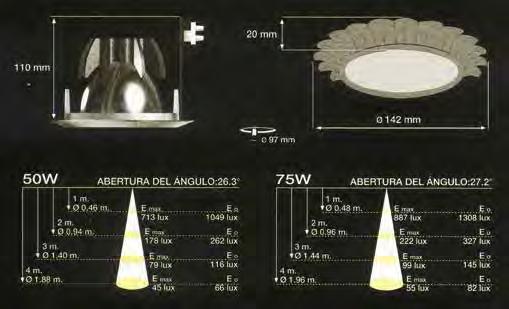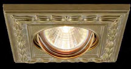 Empotrable basculante fabricado en latón fundido previsto para ser alimentado a 12V mediante un transformador de seguridad según norma EN-60.472. También disponible para 220V. Sistema de sujección de la lámpara mediante muelle de fijación fabricado en acero inoxidable. 30º swivelling recessed fitting in casted brass for 12V power supply using safety transformer conforming to EN-60.472. Available for 220V.