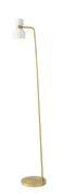 Stehleuchte aus Metall in Lakritzschwarz mit Details in gebürstetem Gold. Milchweißes mundgeblasenes Glas. Die Lampe ist mit einem Dimmer ausgestattet.