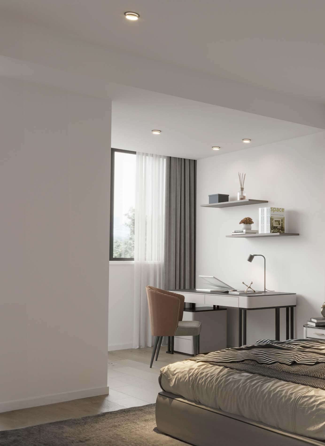 THREE-TRACK TRACER Tracer trójobwodowy daje możliwość oddzielnego sterowania poszczególnymi spotami w szynoprzewodzie. W efekcie można włączyć lub wyłączyć wszystkie lampy bądź też uruchomić konkretne z nich w zależności od preferencji.