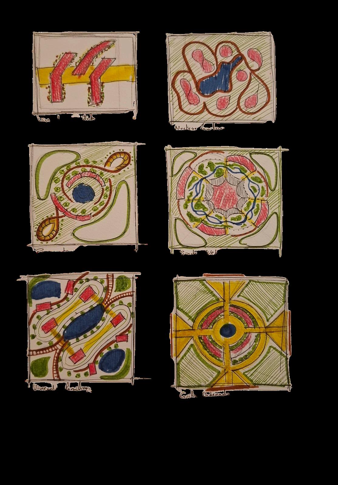 BOCETOSSIGUIENDO DISTINTASTESIS.VIVIENDAENALTURAPARQUEURBANONUCLEOSFAMILIARESNUCLEOSFAMILIARESSPIDERWEB GRILLAORDENADA