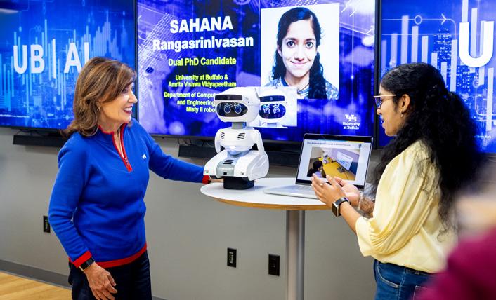 New York State Governor Kathy Hochul received an update on the university’s programs to advance artificial intelligence for the public good. While at UB, Hochul met with UB leadership, faculty and students while touring the National AI Institute for Exceptional Education and the UB Institute for Artificial Intelligence and Data Science.