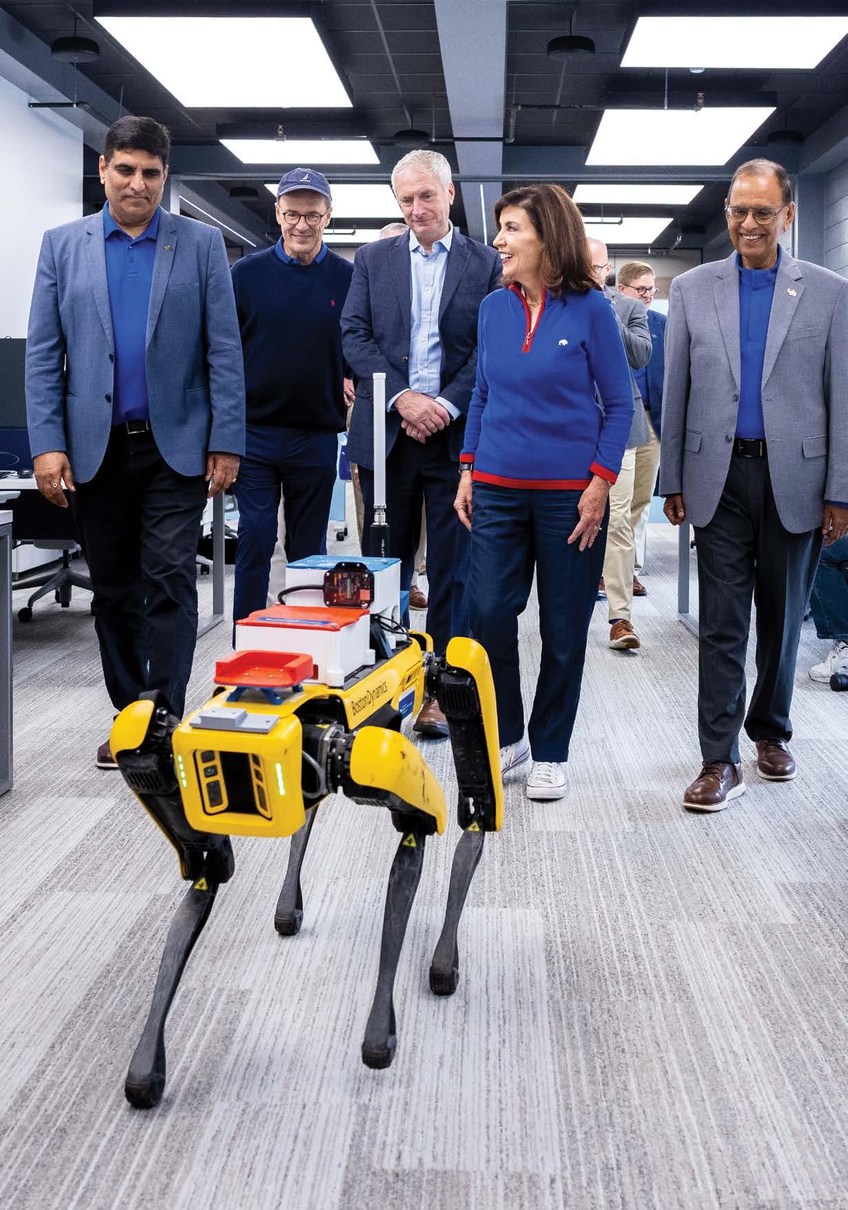 At Right: Gov. Kathy Hochul visited UB on September 6, 2025, to receive an update on the university’s artificial intelligence programs. She met with UB leadership, faculty and students while touring the National AI Institute for Exceptional Education and the UB Institute for Artificial Intelligence and Data Science.
