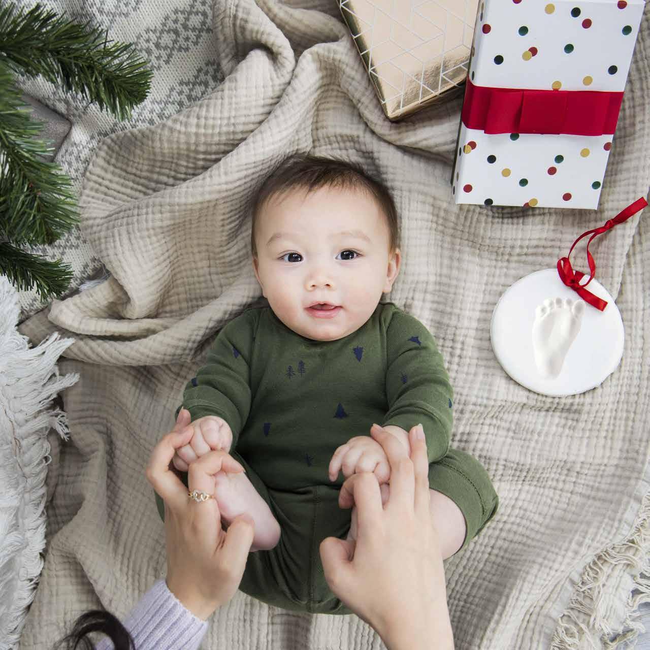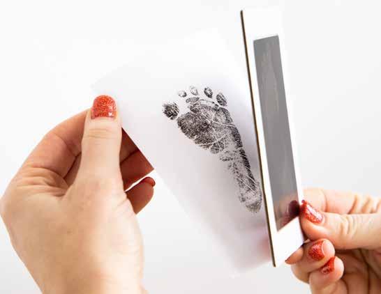 press baby's hand or foot onto the inkpad peel card back to reveal print cherish baby's tiny hands and feet! baby's foot never touches the ink!