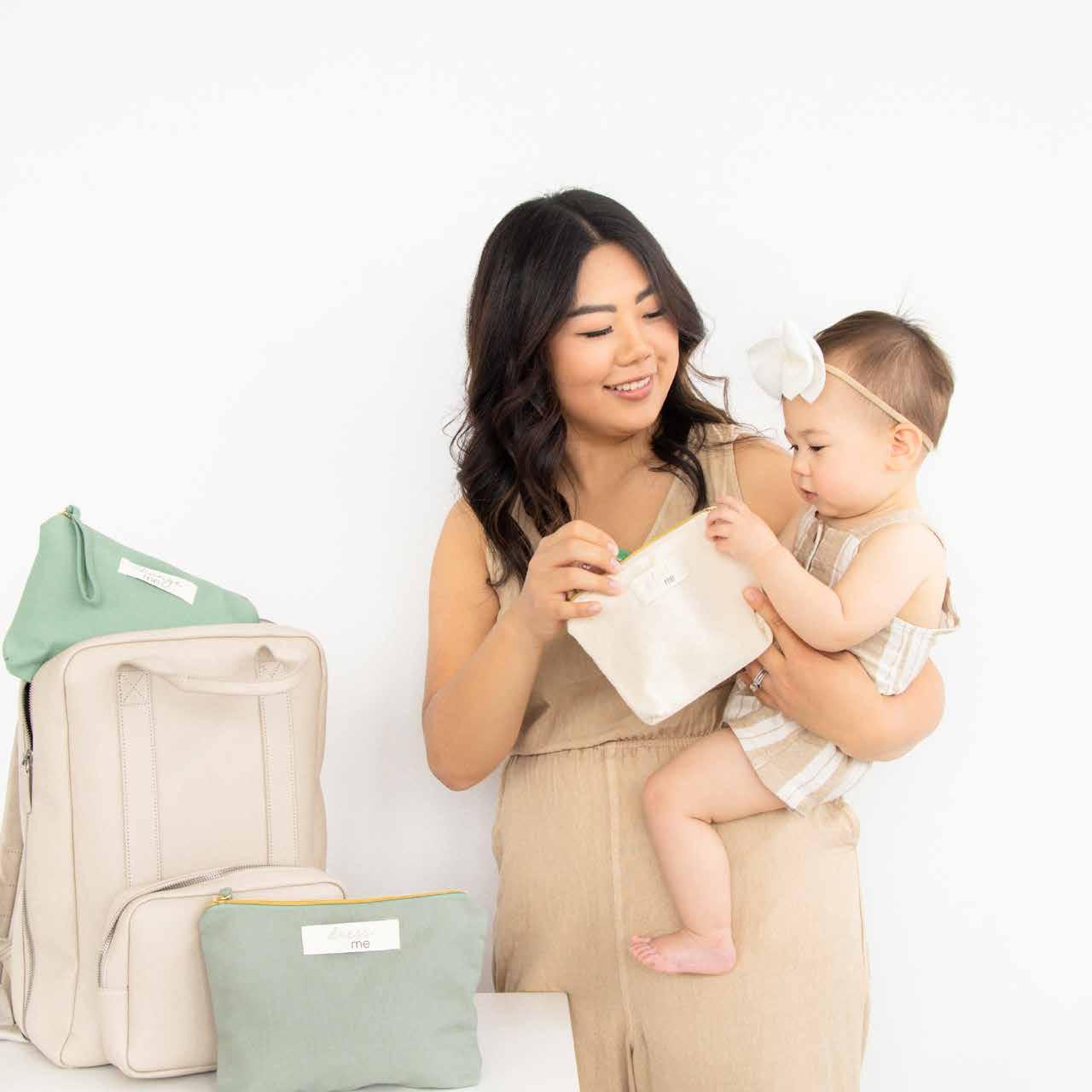 Includes 1 pouch for mom things and 1 pouch for baby things 75005