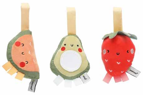 Includes 3 plush toys with ribbon and strap to hang onto any stroller