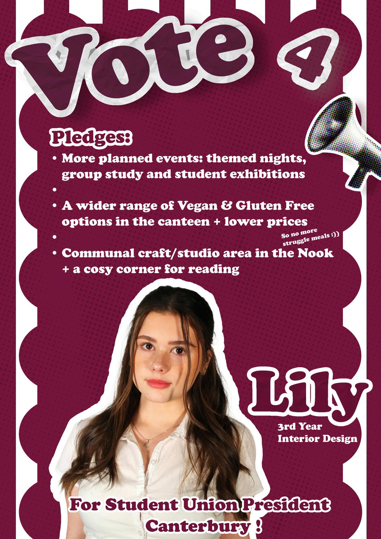 VOTE LIKE U MEAN IT! VOTE LIKE U MEAN IT!CANTERBURYBen PardonAnjan Suresh BabuBrick AshcroftCas/Bucky SandersonLily AshfordAlyson AylottPhoebe DanielsShayaike HassanCHECK OUT THE CANDIDATESVOTE ONLINEVoting is open from Tue 17 Mar, 10AM - Thu 19 Mar, 4PM Head to