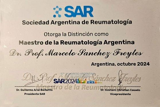 na” es el título honorífico con el que la Sociedad Argentina de Reumatología acaba de reconocer la destacada trayectoria de Marcelo Sánchez Freytes, titular de la Cátedra de Medicina Interna en la carrera de Medicina de nuestra Facultad de Ciencias de la Salud.
