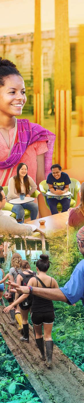 ⊲ Incorporate global learning opportunities – both in person and virtual – into courses, programs and housing on UC Davis campuses and in the surrounding region. Facilitate student opportunities to pursue globally-oriented skills such as competence in another language, deep cross-cultural relationship-building grounded in cultural humility, collaborative research on local and global challenges and experiential opportunities (e.g. internships, externships, traineeships, community-engaged learning, study abroad and away and global professional networking). Support student engagement with the UN Sustainable Development Goals (SDGs) and the world’s wicked problems through these opportunities.