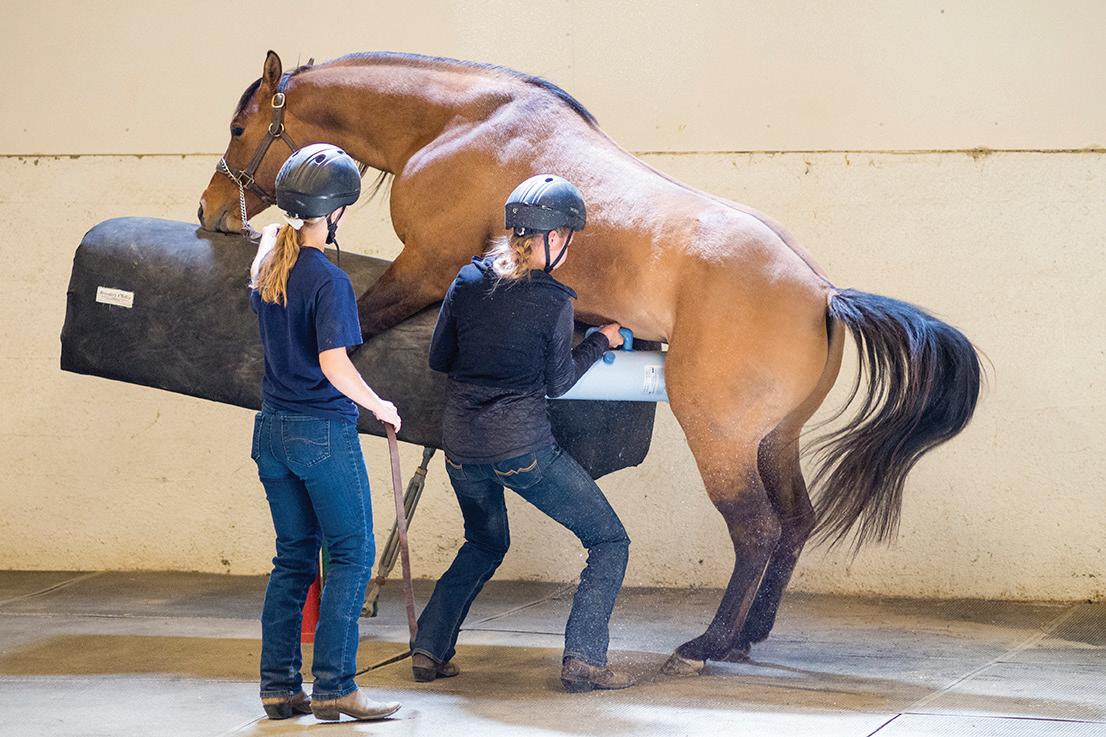 Through the Mare and Foal Management Internship, the yearlings sold in the UC Davis Annual Production Sale have been put through extensive groundwork exercises, including lunging in the round pen and on the line. The yearlings are also trained to tie and stand for grooming, farrier work, bathing, and clipping.
