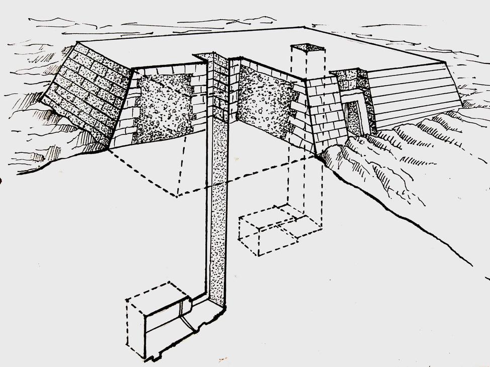 MASTABA là một loại mộ cổ của người Ai Cập cổ đại, có hình chóp cụt, được xây bằng loại gạch bùn lấy từ sông Nin. Những ngôi mộ kiểu này là nơi chôn cất của những nhân vật hoàng gia và các quý tộc từ thời kỳ Sơ triều đại đến thời kỳ Cổ Vương quốc. Mastaba có chiều dài gấp 4 lần chiều rộng, xây dựng theo hướng bắc nam. Cấu trúc có một không gian làm nơi thờ cúng, là nơi đặt một "cửa giả" cánh cổng kết nối giữa dương trần và âm thế Các tư tế và người thân thường mang thức ăn và các vật phẩm đến căn phòng này. Bên trong, một căn phòng được đào sâu bên dưới lòng đất và được lát bằng gạch đá và dẫn đến nơi cất giữ thi hài, được lót bằng gỗ Một căn phòng thứ hai được gọi là serdab, là nơi chứa những vật phẩm thiết yếu dành cho người chết ở thế giới bên kia. Một bức tượng của người chết thường được ẩn giấu trong căn phòng serdab, được xem là nơi trú ngụ của linh hồn ba Trên tường nơi đặt tượng có khoét một lỗ nhỏ để linh hồn có thể "ngửi mùi hương hoa phẩm vật". serdab với tượng người quá cố nơi chứa quan tài nơi chứa quan tài cửa giả lối vào trực chôn cất nhà nguyện nhà nguyện