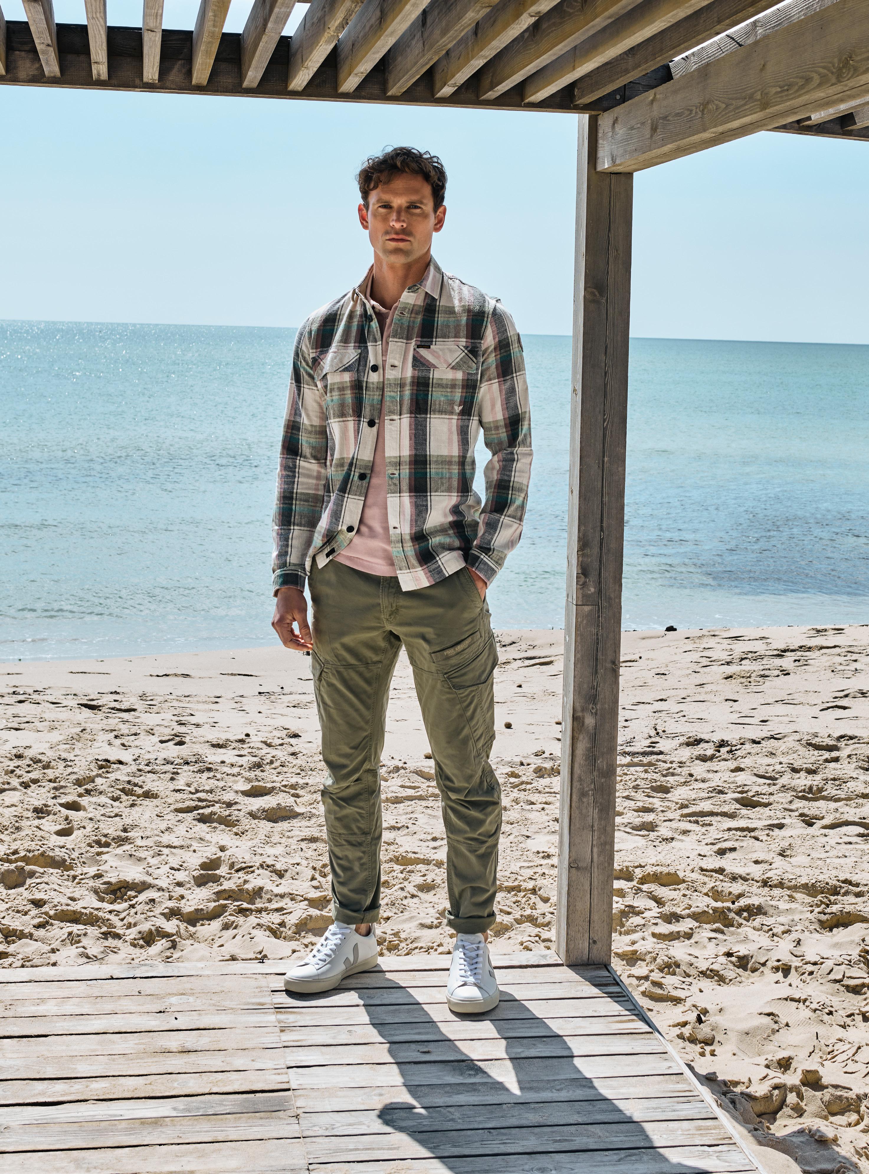 Hemdjacke 89,90, Polo 59,90, Chino 109,90, alles von PME LEGEND , Schuhe VEJA 139,90