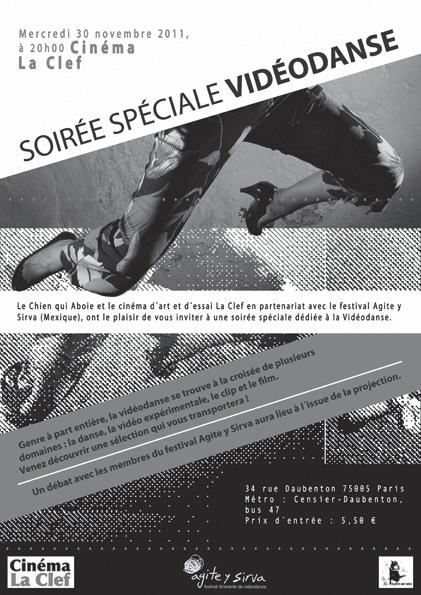 Cartel de Agite y Sirva 3er Festival Itinerante de Videodanza en colaboración con Le Chien Qui Aboie / Pompi García y Pierre Fave / París, 2011 / Color / Fotografía digital.