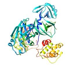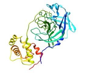 e información de Zhang et al., 2020; Yang et al. 2003). Las estructuras presentadas se obtuvieron de Protein Data Bank (PDB ID: 6M03 y 1UJ1, respectivamente). (A) (B)