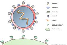 En cuanto a su análisis genómico y proteómico se ha evidenciado que sars-CoV-2 codifica aproximadamente 25 proteínas necesarias para llevar a cabo la infección en humanos y consecuentemente, su replicación (Parks y Smith, 2020). Asimismo, el genoma del nuevo coronavirus es similar a otros de la misma familia pues está conformado por al menos diez marcos de lectura abiertos (orFs, por sus siglas en inglés) de los cuales algunos son necesarios para la expresión de poliproteínas involucradas en la formación del complejo replicasa-transcriptasa (rTc, por sus siglas en inglés) cuyo objetivo es favorecer el ensamblaje de proteínas virales en el organismo infectado. No obstante, también codifican proteínas que a pesar de ser consideradas como no esenciales para la replicación, se ha demostrado que confieren cierta ventaja en cuanto a la sobrevivencia del virus en sistemas in vivo (Malik, 2020; Sawicki et al., 2005; Lee y Treanor, 2016). Por otra parte, investigaciones pasadas han demostrado que la mayoría de los CoV requieren de al menos cuatro proteínas estructurales para producir una partícula viral estructuralmente completa (ver figura I), lo que sugiere que algunos CoV pueden codificar proteínas adicionales con funciones compensatorias superpuestas en el ciclo de replicación del virus.