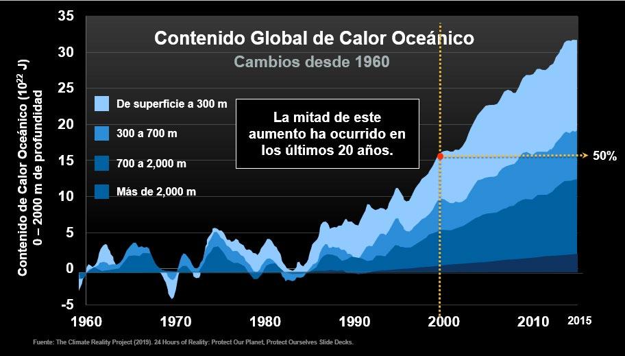 Between 1971 and 2010, the world’s oceans absorbed more than 90% of the additional accumulated thermal energy resulting from the rising levels of greenhouse gases (Pachauri, et al., 2015).