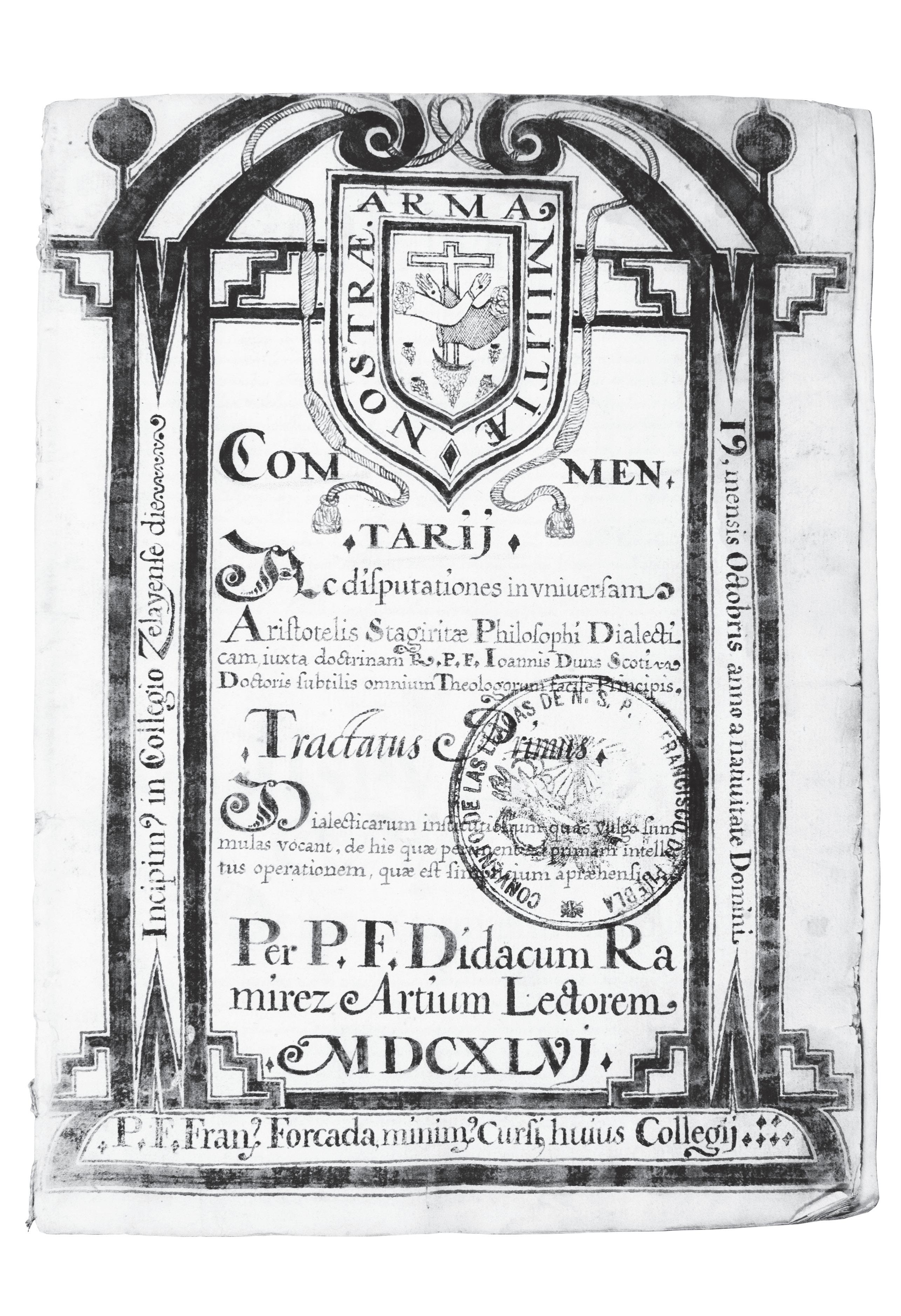 ‡ Esta lógica fue leída por el padre fray Juan Antonio de Segura en el Colegio de Bethlehem; y allí le fue puesto fin el día 11 de agosto del año de Nuestro Señor 1703. Pero después fue transcrita por el mismo en este gran convento de redentores para que a él diera algo de su obra el candidato en Filosofía, y fue terminada el día 10 de octubre de 1709.