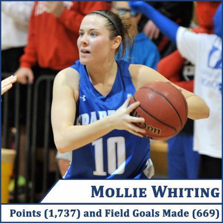 Points Season Career 1. Mollie Whiting 667 2012-13 1. Mollie Whiting (2009-13) 1,737 2. Annie Brown 635 1991-92 2. Penny Wehrs (1984-88) 1,707 3. Dana Kester 502 2002-03 3. Dana Kester (2000-04) 1,680 4. Penny Wehrs 499 1987-88 4. Greta Pemsl (1998-02) 1,609 5. Dana Kester 496 2003-04 5. Jennifer Nichols (2006-10) 1,541 6. Greta Pemsl 485 2001-02 6. Jessica Cox (2001-05) 1,328 7. June Salow 478 1985-86 7. June Salow (1982-87) 1,291 8. Dawn Laubach 466 1987-88 8. Emily Brinker (2013-17) 1,258 9. Jodi Ottersburg 455 1999-00 9. Christina Morrison (1982-86) 1,235 10. Penny Wehrs 441 1984-85 10. Angie Rieniets (1992-96) 1,226 ^ Whiting led Division III in 2012-13 Rebounds Season Career 1. Annie Brown 380 1991-92 1. Christina Morrison (1982-86) 979 2. Christina Morrison 295 1985-86 2. Greta Pemsl (1998-02) 833 3. Greta Pemsl 271 2001-02 3. Jennifer Bell (2004-08) 684 4. Jackie Ryan 269 1989-90 4. Miah Smith (2018-22) 653 5. Dawn Laubach 250 1987-88 5. Angie Rieniets (1992-96) 641 6. Christina Morrison 245 1983-84 6. Rhonda Cooling (1981-85) 607 7. Jodi Ottersburg 239 1999-00 7. June Salow (1982-87) 559 8. Christina Morrison 235 1984-85 8. Amanda Dickson (1992-97) 548 9. Amanda Dickson 228 1992-93 9. Taylor Foltz (2002-06) 546 10. Jodi Ottersburg 219 2000-01 10. Annie Brown (1989-92) 543 Assists Season Career 1. Courtney Musser 166 2007-08 1. Courtney Musser (2004-08) 591 2. Courtney Musser 150 2006-07 2. Dana Kester (2000-04) 456 3. Courtney Musser 148 2004-05 3. Penny Wehrs (1984-88) 360 4. Dana Kester 134 2003-04 4. Jessica Cox (2001-05) 298 5. Courtney Musser 127 2005-06 5. Abbey Meyer (2014-18) 270 6. Kathleen Mathias 120 2021-22 6. June Salow (1982-87) 261 7. Dana Kester 119 2001-02 7. Aimee Reyzer (2008-12) 232 8. Penny Wehrs 111 1985-86 8. Kathleen Mathias (2019-Current) 231 ** 9. Cecilia Rodriguez 107 1989-90 9. Mollie Whiting (2009-13) 228 10. Dana Kester 103 2000-01 10. Multiple tied with ….. 224 ** Active