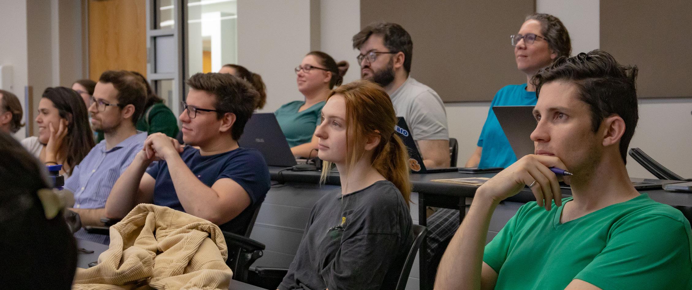 EMERITUS DR. JIM JONES AND CHERYL PORTER CONVERSE WITH STUDENTS AFTER THE FEBRUARY CENTENNIAL SEMINAR. 5. PH.D. STUDENT, LORI WILLARD, SMILES AS SHE PRESENTS HER 1ST PLACE POSTER AT THE UF/ABE POSTER SYMPOSIUM. 6. ASABE STUDENTS ACROSS THE SOUTHEAST GATHER FOR A PHOTO AT THE ANNUAL ASABE RALLY, HOSTED BY UF. 7. BIOLOGICAL ENGINEERING STUDENTS GATHER FOR A PHOTO AT THE 2023 RECOGNITION & AWARDS DINNER. 8. UF/ABE PROFESSOR, DR. TOM BURKS, PRESENTS THE HISTORY OF MECHANIZED CROP PRODUCTION DURING THE APRIL CENTENNIAL SEMINAR. 9. FACULTY, STAFF, AND STUDENTS POSE FOR A PICTURE AT ORDWAY SWISHER FOLLOWING THE MARCH CENTENNIAL SEMINAR.