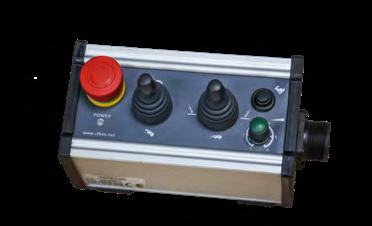 Joystick afstandsbediening in compacte behuizing met 4 meter kabel voor het traploos proportioneel bedienen van alle functies.