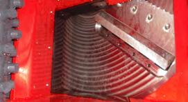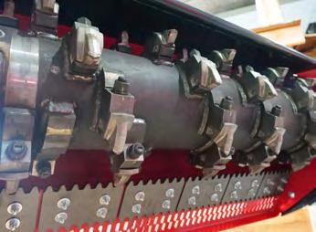 50 degrees cut angel, 3 aggressive infeed rollers, and 3 blades provide a triple action pull and a very powerful infeed