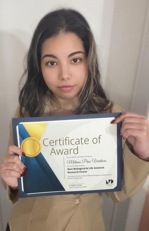 Melissa Pino Verdecia, a Miami-Dade College (MDC) intern who worked in Dr. Ashley Smyth's biogeochemistry lab this summer, was awarded Best Biological & Life Sciences Research Poster at the MDC Research Symposium on November.