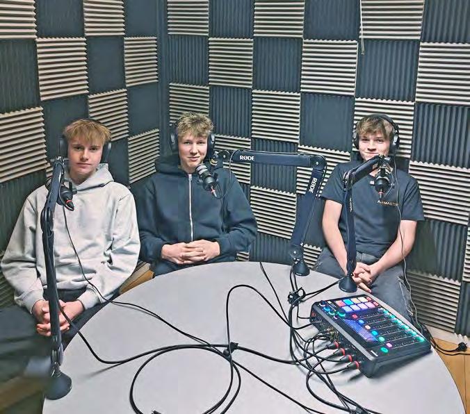 Fra venstre er det Sebastian Kongsbak, Otto Frederiksen og Simon Andersen, der går i 9.b på Aars Skole og er med i konkurrencen om den bedste læringspodcast i Danmark 2026.