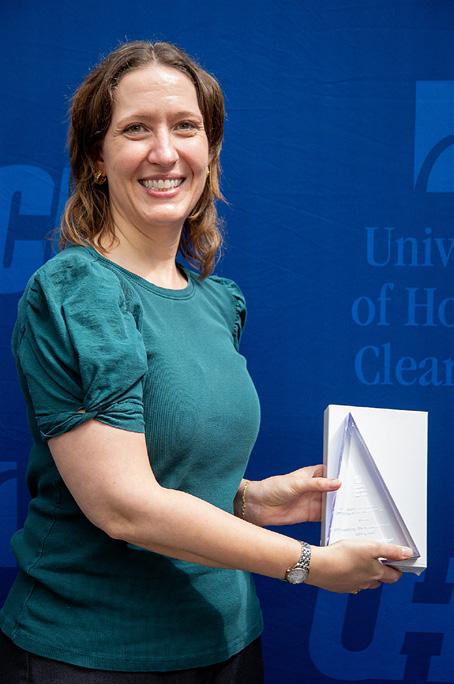 UH-Clear Lake Distinguished Research Award recognizes professional accomplishment in a discipline or field through published work, exhibitions, or similar activity, as recognized by peers for high contribution to the intellectual growth of an academic area. A monetary award of $1,500 complements this honor.