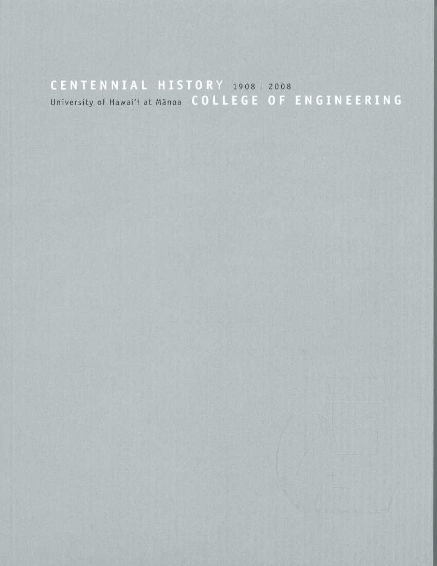 In 2008 the College of Engineering, University of Hawai‘i at Ma¯noa, celebrates its centennial. When classes began in 1908, there was one engineering professor; today there are 54. Since the College issued its first engineering diploma in 1912, over 9,000 engineering majors have graduated. It is an appropriate time to look back on the events and developments that have shaped the College, to honor key individuals, and to consider the role of engineers in the high-tech world we inhabit today.