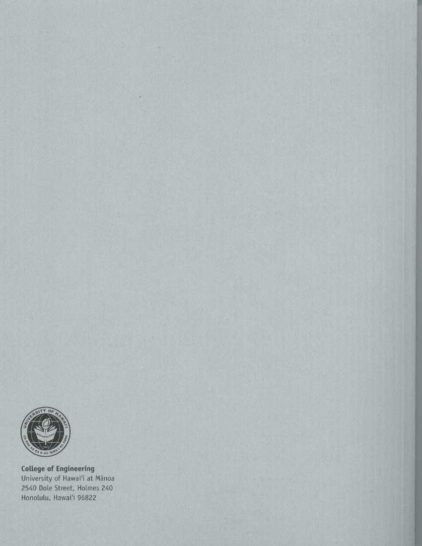 Main printed sources consulted: Alumni News; Chen, Wai-Fah. My Life’s Journey: Reflections of an Academic; Kamins, Robert M. and Robert E. Potter. Ma¯lamalama A History of the University of Hawai‘i; Holmes, Wilfred J. College of Engineering: A Record of its History and its Alumni (accompanied by 1981 update); Kobayashi, Victor N. ed. Building a Rainbow: A History of the Buildings and Grounds of the University of Hawai‘i’s Ma¯noa Campus; Honolulu Advertiser; Honolulu Star Bulletin; Ma¯lamalama (University of Hawai‘i magazine); Ka Palapala; University of Hawai‘i Catalog; Quadrangle; UH Alumni magazine; Wiliki