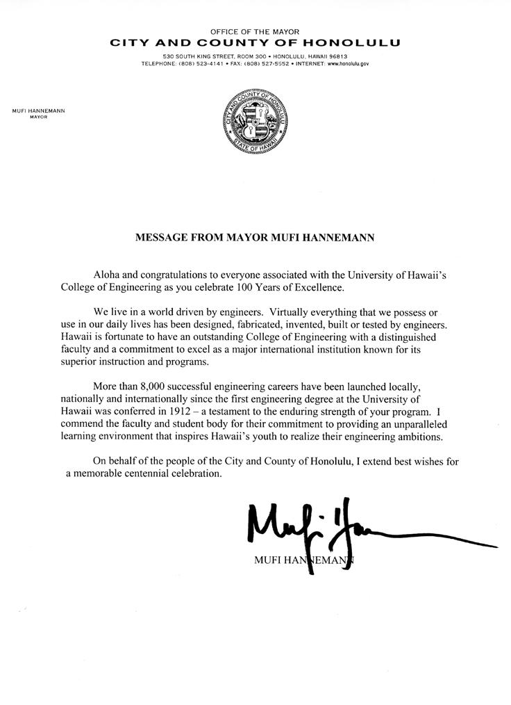 Special acknowledgments: College of Engineering Centennial history committee: Kristi Bates, Kerri Van Duyne, Carrie Matsuzaki, Jean Imada; Annette Summerlin, Hawaiian Electric Company Archives; College of Engineering unofficial historian, C. Papacostas.