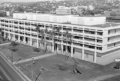 The Engineering Quadrangle, a complex of four rectangular single-story structures, was built between 1915 and 1928. It housed classrooms and storage for the engineering department. Arthur Keller designed the durable structures, four of which still remain in use. In 1965 the complex was officially named for John Mason Young. A plaque mounted on a moss rock originally located within the Quadrangle, but now situated in the courtyard of engineering’s present quarters, bears the insignia: “Dedicated to the memory of John Mason Young, 1908–1940.”