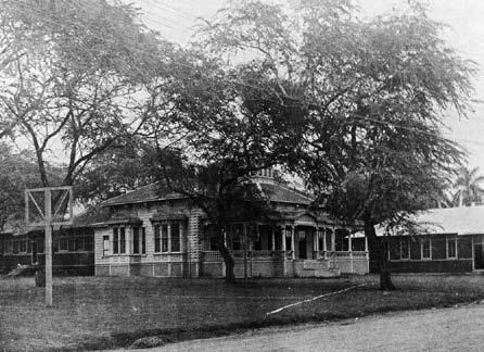Engineering instruction first began in 1908 under the auspices of the newly-chartered land grant College of Agriculture and Mechanic Arts of the Territory of Hawai‘i, later to become first the College and then the University of Hawai‘i. To launch the new College, the newly-appointed president, John Gilmore, recruited the faculty, many of them from Cornell University, a New York land-grant institution. The faculty numbered thirteen, a fact of some amusement in the community since the first faculty outnumbered the first five regular students. It was soon evident that the engineering program proved more attractive than agricultural studies since the sons of immigrant workers were looking for a way out of plantation life rather than a return to that hard life. Classes began on Young Street near Thomas Square in quarters that had once been the Chinese Consulate, but in 1912 moved to the new campus in Ma¯noa Valley.