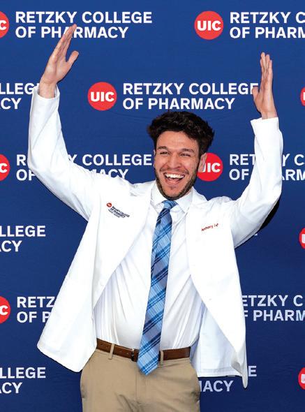 The stories in this issue describe just a few of the great things that are happening at the UIC Retzky College of Pharmacy. As dean, I have the enviable pleasure of witnessing firsthand the many other accomplishments of our faculty, staff, students, and residents and other trainees. I also have the humbling knowledge that their success is fueled by the generous support and engagement of our alumni and partners. Alumni like Mike Moritz, BS Pharm ’72, who with his wife, Ana, created a new endowed scholarship for pharmacy students—the first under our Legacy Scholarship matching program, which you can read about within. Or alumni like Sandra Salverson, PharmD ’96, profiled in this issue, who is senior vice president of pharmacy services at OSF HealthCare. She and OSF Healthcare are fantastic partners for student clinical training.