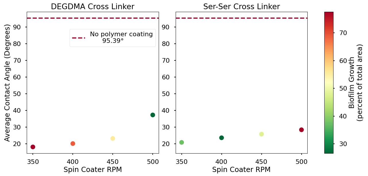 Fig 4: Contact angle of polymers compared to biofilm growth