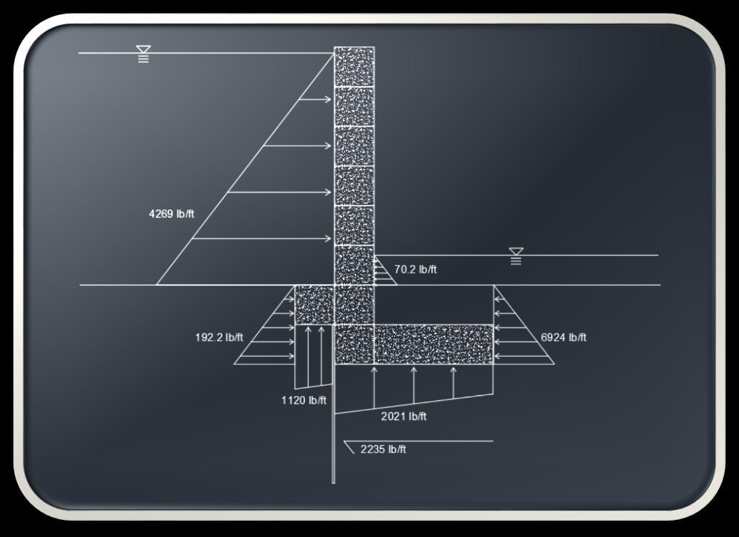 Failure Mode FOS Sliding 2.07 Overturning 1.54 Piping 4.94 Soil Test Results 4 ft Sample 8 ft Sample Units Atterberg Liquid Limit 30 N/A % Hydraulic Conductivity 2.864E-05 6.989E-05 cm/s Friction Angle 37.04 44.51 degrees Cohesion N/A N/A lb/ft^2