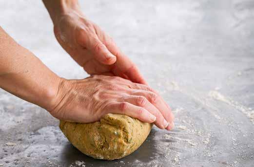 Dans un bol, placez les farines de millet et de pois chiches avec le levain. Mélangez avec une cuillère en bois. Rajoutez ensuite le sel, le bicarbonate de soude, l’huile d’olive et les graines de cumin écrasées. Mélangez. Versez l’eau (tiédie ou à température ambiante) petit à petit et formez une boule de pâte. Pétrissez-la pendant 2 à 3 minutes. Placez dans un banneton, couvrez d’un linge et laissez reposer pendant minimum 15 minutes.