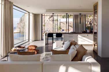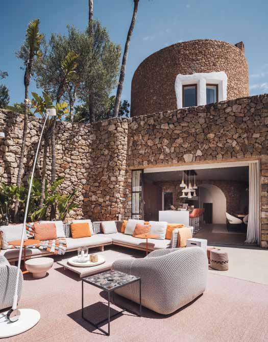 meditation areas. The extensive terraces, larger even than the footprint of the house, allow the family to follow the abundant Ibizan sun all day long, from morning swims in the pool to evening gatherings at the outdoor kitchen. There are dedicated terraces for outdoor living, dining, cooking and sunbathing.