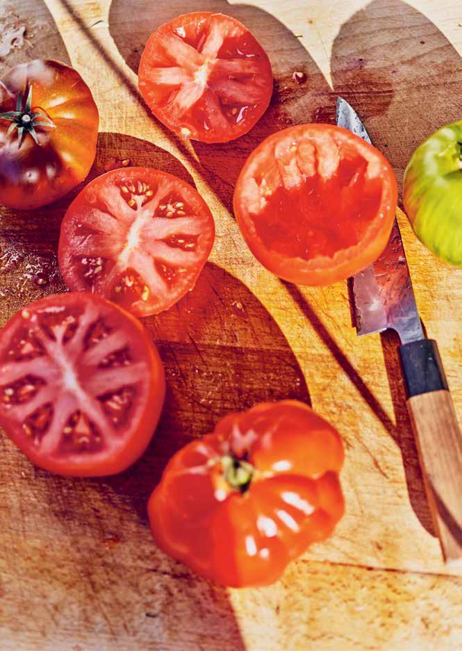 Hoe kunnen we elke dag ‘goed’ eten? Er is veel ingewikkelde, betuttelende informatie over wat we moeten doen en hoe we moeten koken. Ik probeer het meeste te negeren en volg een heel simpele strategie. Ik begin met een groente, of een aantal groenten, en bouw daar een maaltijd omheen, waarbij ik rekening houd met de kleur, soort, verkrijgbaarheid, balans, smaak en begeleidende granen. Ik weet dat het ingewikkeld klinkt, maar als je het eenmaal in de vingers hebt, komen de groentemaaltijden vanzelf op gang. Als je probeert te variëren met de kleuren die je op een dag en in de loop van de week eet, en met name royaal bent met alle tinten groen, krijg je zo de smaak te pakken van deze manier van eten – en haal of overschrijd je de dagelijkse benodigde hoeveelheid groente met gemak. Focussen op groenten is meestal ook een voordelige manier om te koken, zowel voor je portemonnee als voor het milieu, want je gebruikt wat op dat moment in overvloed aanwezig is.