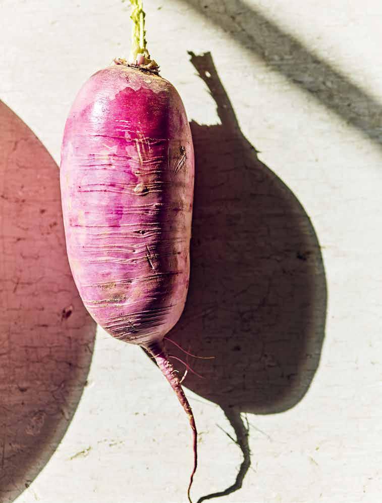 De lente gaat langzaam van start. Het voorjaar is geen plotselinge uitbarsting van groene scheuten en knoppen, maar eerder een voorzichtige warming-up, die op dezelfde manier begint als de winter eindigt, met koolsoorten, uien en opgeslagen knolgroenten. Het uitlopen begint later, heel geleidelijk, en komt pas goed op gang als het begin van de zomer zich aandient. We hebben nog steeds behoefte aan warmte en geborgenheid in de keuken en houden nog even vast aan het soepseizoen, waarna we steeds uitbundiger gaan koken naarmate de lente vordert en de radijsjes, eerste aardappels, asperges en slasoorten er weer zijn. De lichtgekleurde en donker- en felgroene groenten zijn alom aanwezig.
