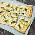 1 Pel en pers de knoflookteentjes of snijd deze fijn. Maak een mengsel van de olijfolie, appelazijn, tamari en knoflook, en voeg peper en zout naar smaak toe. Laat het mengsel een paar uur trekken.