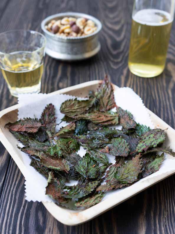 Dit leuke en stoere recept van knapperige brandnetelchips is speciaal voor dit boek bedacht door Maaike Pfann, alias Mevrouw Onkruid. Ze maakt de heerlijkste recepten van ‘onkruid’, zoals deze chips. Lekker voor bij een koud zelfgebrouwen brandnetelbiertje!