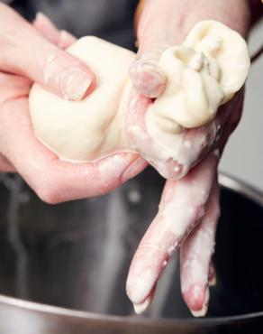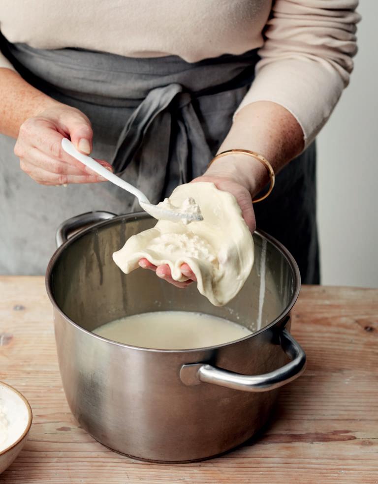 1 Volg het recept voor mozzarella op bladzijde 44-49 tot en met stap 4.