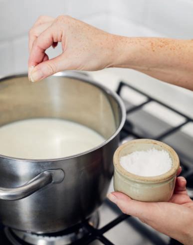 4 Strooi met je vingers 1 theelepel zout op de wrongel in de pan (zie stap 4 blz. 44).