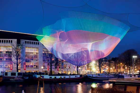 17 amsterdam historic & modern ◃ 2 January Amsterdam, Central hall in the former diamond workers trade union building known as De Burght, designed by architect Hendrik. P. Berlage (1900). The Burcht is the oldest trade union building in the Netherlands. ▵ 3 January Light sculpture by Janet Echelman during the Amsterdam Light Festival, called ‘Tsunami 1.26’. The eye-catching artwork hangs over the Amstel river near the town hall and national theatre Stopera. ▿ 4 January NEMO Technology Museum by Renzo Piano. Following pages 5 January The National Maritime Museum. In front a replica of the 18th-century vessel ‘De Amsterdam’.