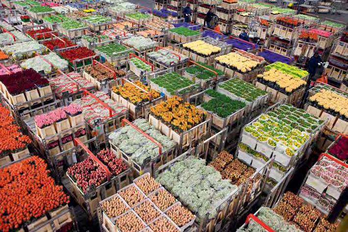 33 ▵ 20 January Aalsmeer, Royal FloraHolland, the largest flower and plant auction in the world. The Netherlands is the world’s largest exporter of ornamental plants. ◃ 19 January National Tulip Day in Amsterdam. The official start of the tulip season at Dam Square in front of the Royal Palace takes place on the third Saturday in January. People can pick the tulips for free. The Royal Palace was built between 1648 and 1655. In the 17th century, this palace, which was then still the City Hall, was the largest secular building in the world, reflecting the free-thinking character of the city. the world in bloom
