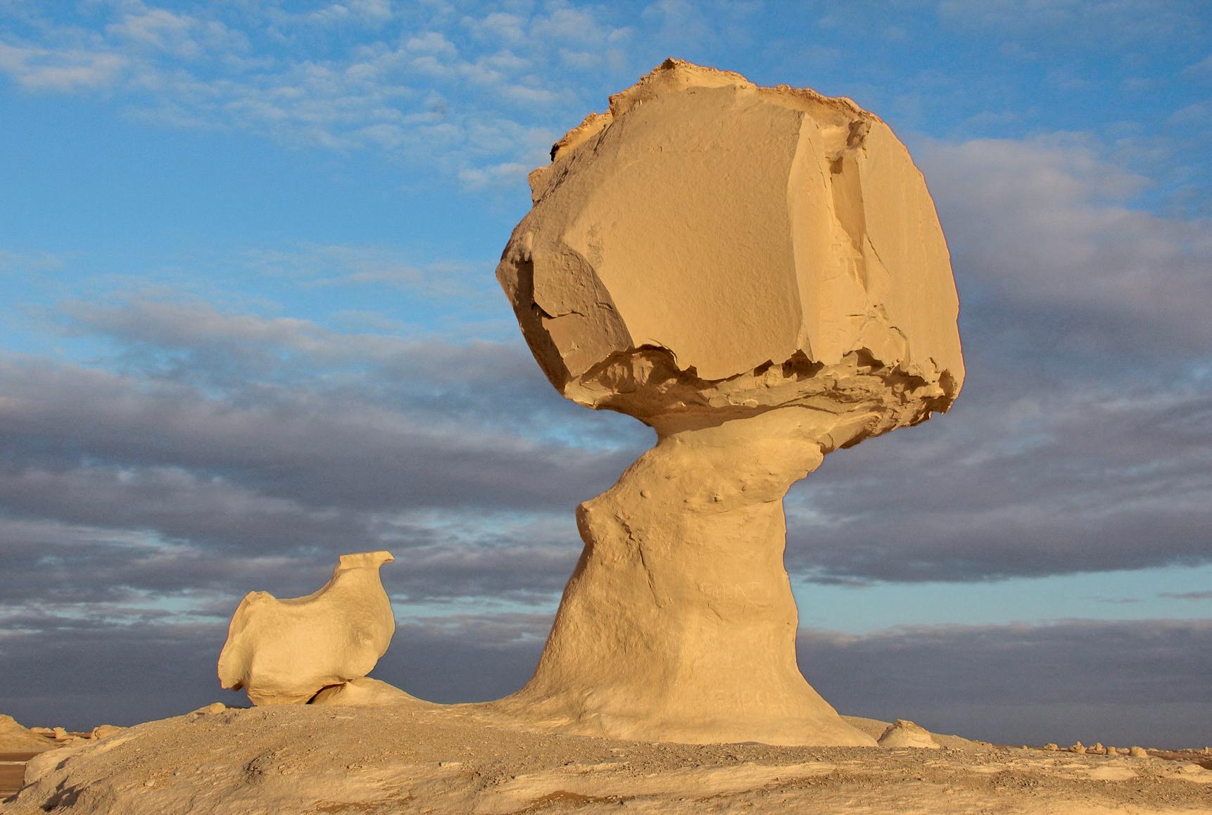 The otherworldly white rock formations of this red sand desert, which is home to fennec foxes and sand cats, are absolutely stunning.