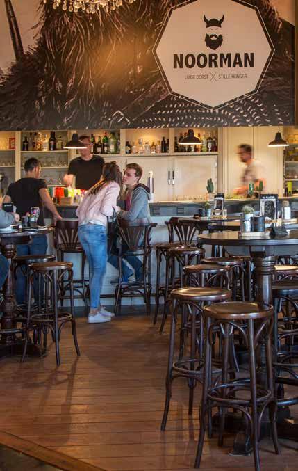 Bij Noorman kun je samen met vrienden gezellig onderuitzakken in de chesterfields of aan een tafeltje iets kleins of iets groots nuttigen. Onder het waakzame oog van de Viking – let op de grote tekening aan de muur – kies je een biertje van de kaart of de suggestie van het vat. Laat je zeker niet afschrikken door de reusachtige afbeelding van de hongerige beer die met opengesperde muil in je nek hijgt als je een smakelijke Noorburger of een van de andere gerechten wil verorberen. De vlotte bediening maakt meteen komaf met elke ‘luide dorst, stille honger’, het motto van deze zaak.