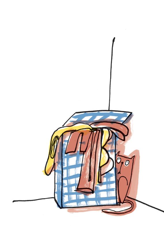 D aantje knipt het licht aan. In de ho ek van de kamer zit een heel bange kat.